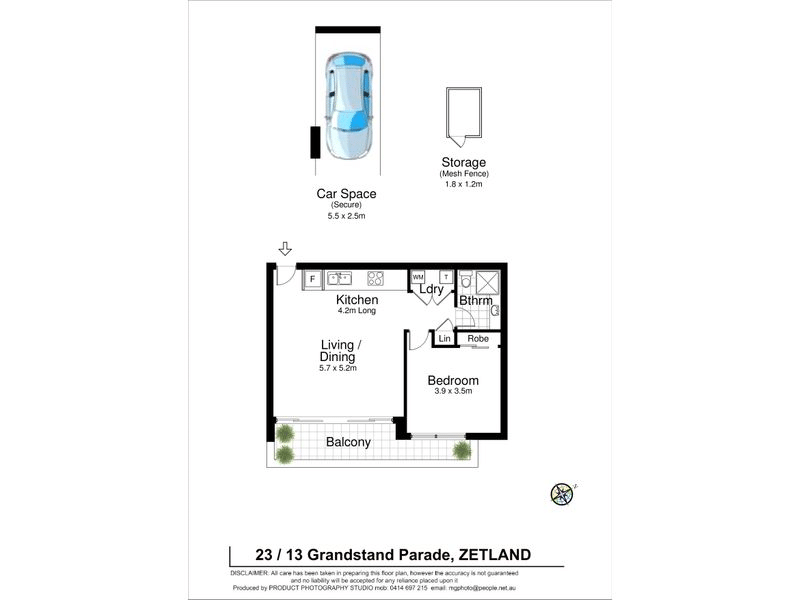 • 60sqm internal plus car space and storage room, total is 76sqm.